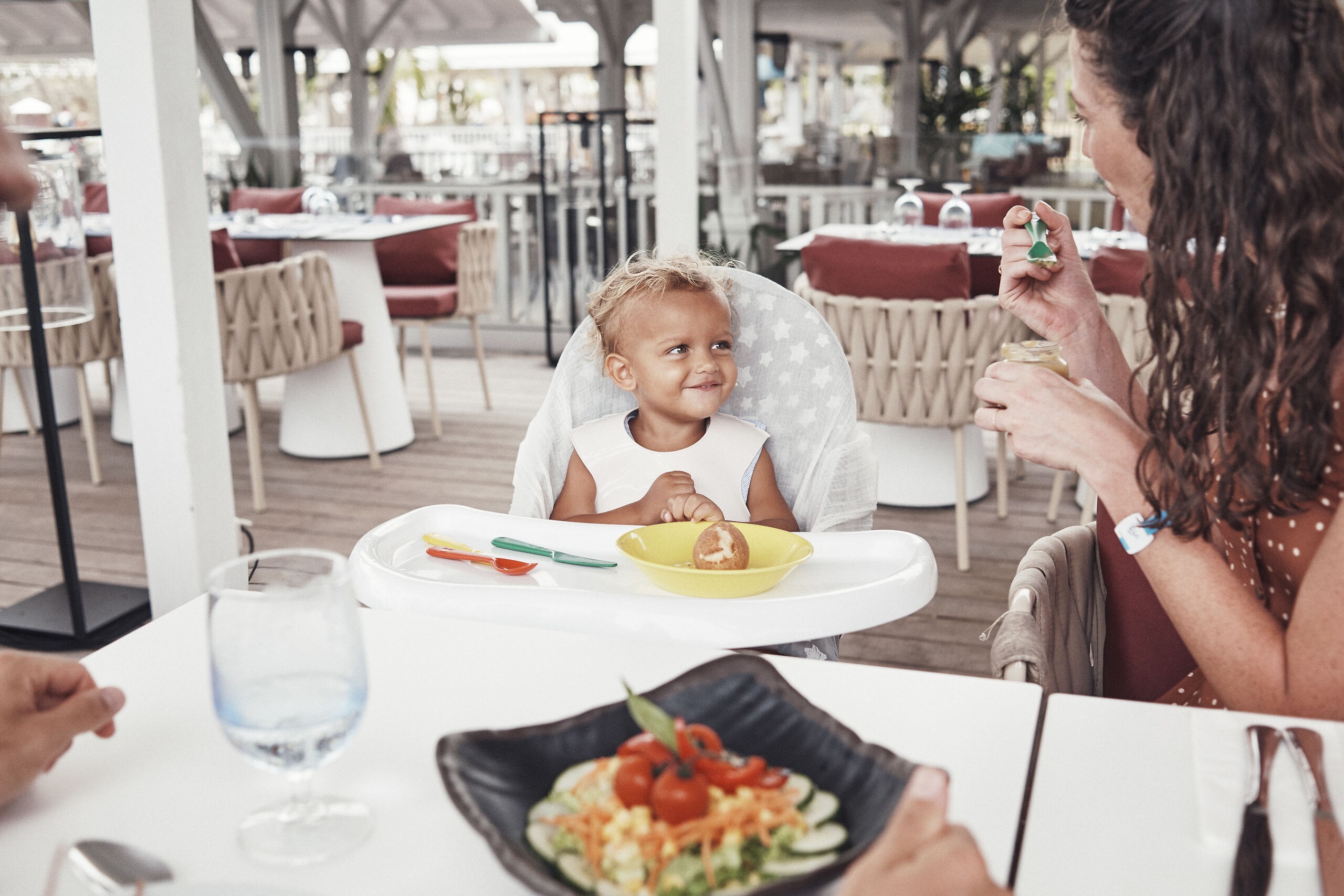 El servicio de Baby Club Med® está disponible a un coste adicional a su paquete Todo Incluido en una selección de villas.
